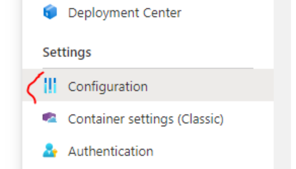 Le service Azure AppService permet d’effectuer la configuration d’une application via le menu: